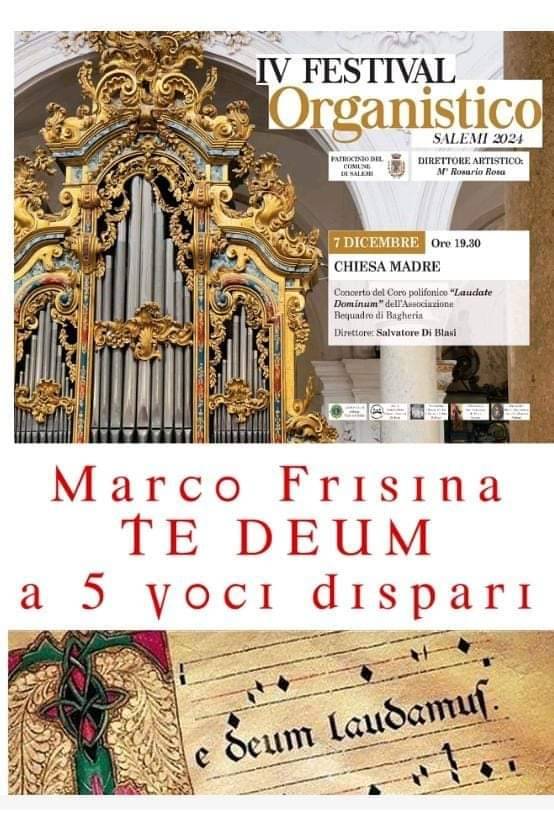 che parteciperà al IV Festival Organistico Città di Salemi. Il coro eseguirà per la prima volta il Te Deum a 5 voci dispari di Mons. Marco Frisina, noto compositore di musica liturgica e direttore del Coro della diocesi di Roma. Il programma include anche brani di Salvatore Di Blasi, direttore del coro, come Ave speranza nostra, Una stella nel cielo spuntò e la Suite di Natale. Completeranno il concerto il Cantique de Noel di Adolphe Adam, e una selezione di canti natalizi.