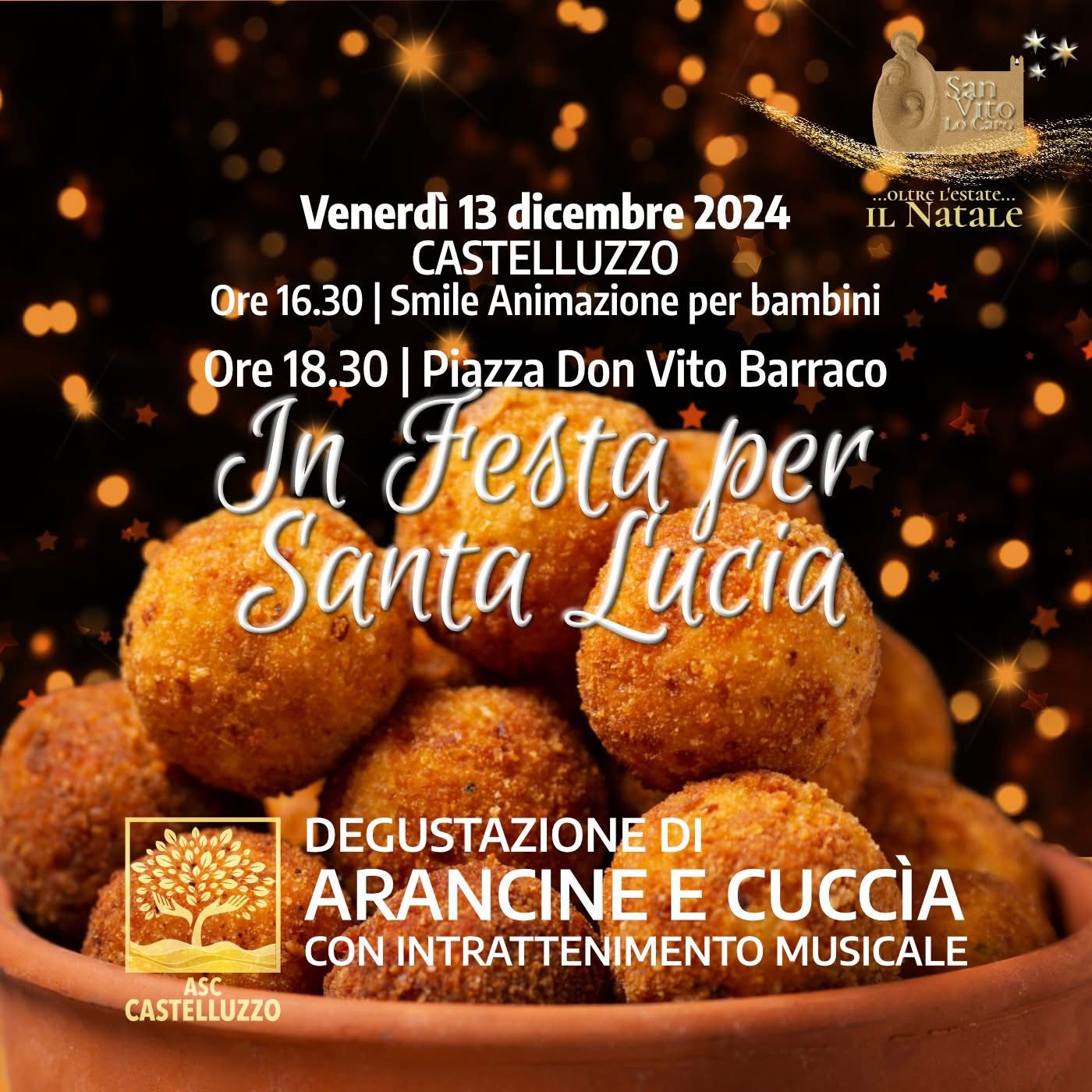 Nell'ambito della rassegna natalizia "Oltre l’estate... il Natale", promossa dall’amministrazione comunale di San Vito Lo Capo guidata dal sindaco Francesco La Sala, Castelluzzo si accende di sapori e allegria per celebrare la tradizione di Santa Lucia.